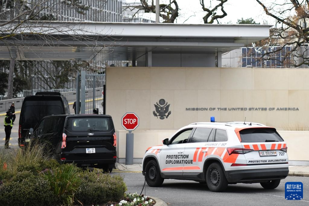 11月23日,在瑞士日内瓦,外交车辆驶入美国常驻联合国日内瓦办事处代表团官邸。